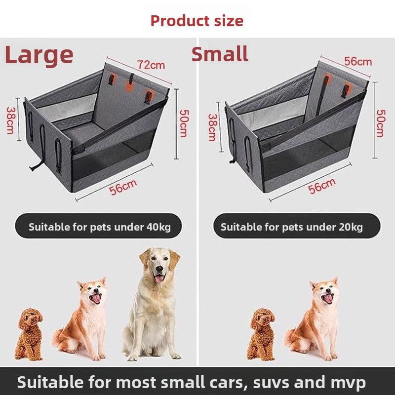 Answer 2: The car mat comes in two sizes: Large (72cm x 56cm) suitable for pets under 40kg, and Small (56cm x 56cm) suitable for pets under 20kg.